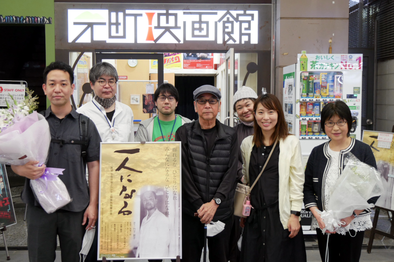 『一人になる ―医師 小笠原登とハンセン病強制隔離政策―』初日の6/12(土)上映後、プロデューサーの鵜久森典妙さんの舞台挨拶を開催しました。もともと高橋一郎監督の舞台挨拶を予定しておりましたが、高橋監督が6/4(金)に急逝されたため、35年間タッグを組んでこられた鵜久森さんがご来場のみなさまにご挨拶と、倒れられたときのご様子の説明と、これまで一緒に制作されてきた映画についてのお話をされました。そして高橋監督のご子息である高橋満作さんも、地元神戸での初日に「お客さまと一緒に作品を鑑賞したい」と関東から駆けつけてくださりました。上映後には鵜久森さんと一緒にお客さまにご挨拶をされ、父親としての高橋監督についてや、子どものころはなかなか興味を持てなかった高橋監督の制作する映画の価値に大人になって気づいたことなどをお話しいただきました。地元で映画制作を続けて来られた高橋監督を偲び、朝早くから行列ができ満席で初日を迎えました。「高橋監督もきっと見ている」と舞台挨拶で話された鵜久森さんの言葉が胸に残りました。