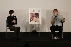 『帆花』4/10(日)の上映後、國友勇吾監督と、伊丹市で重度障害児者の支援をされている李国本修慈さん(NPO法人地域生活を考えよーかい代表理事/有限会社しぇあーど代表取締役)にお越しいただき、トークを開催しました。帆花ちゃんの母親である理佐さんと李国本さんはもう10年来のお付き合いをされています。もともとは理佐さんのブログを友人に紹介されたことをきっかけに交流が始まり、今でも年に1~2度は西村家を訪れるそうです。映画について、障害児とその家族だけでなく、自然の移り変わりや街の風景などがはさまれていてその存在が街とともにあるように感じられることが良かったと李国本さん。障害児者について、さまざまな法整備がされていってはいるもののそこからこぼれる人はなくなりません。國友監督も、社会の枠だけでなく近くにいる人たちも「私には何もできないから…」と、差別や偏見ではなく善意や配慮があるのに(だからこそ)距離を取ってしまうような行動があり障害児者やその家族を孤立させていると指摘されます。“医療的ケア児”“超重症児”という言葉もできましたが、そうしてカテゴライズすることを李国本さんは問題視され、「医療者しか彼らに関われないという専門性に委ねてはダメ。もっとも大事なのは本人と一緒に過ごした時間の積み重ね」と話されました。ともに生きる社会をどういう形で目指すのか、そのヒントが詰まったトークでした。