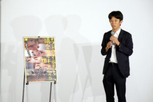 6/29(土)『#つぶやき市長と議会のオキテ』上映後に岡森吉宏監督の舞台挨拶を開催しました。大学時代の4年間は神戸で過ごされたという岡森監督。大学卒業後、地元の広島に戻られホームテレビに入社、以後記者として地方政治に力を入れるホームテレビ製作で本作を作り上げました。石丸氏が都知事選に立候補したのは寝耳に水で、その知らせを聞いたのはちょうどこの作品の全国上映のスケジュールを組んでいる時だったそう。「石丸市政を通して地方政治を知ってもらう」という映画ですので、都知事選とは直接関係がありませんが東京での上映は一旦中断となりました。岡森監督は「取材するときに気をつけたのは距離感」と話されていました。市長側、議員側のどちらにつくわけでもなく、安芸高田をなんとかしたいと思っている両者をカメラに収めていったそうです。政治家取材は自由度が少ないそうですが、石丸市長だったからこそこの映画は「見たことがない、議会の中を撮れた映像になっている」と岡森監督はおっしゃっていました。