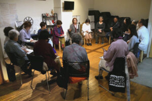ファシリテーターは関西学院大学社会学部教授で、ウィメンズアクションネットワークの副理事長でもある中谷文美さんが務められ、20代から70代まで、男性を含む16名の観客が参加しました。