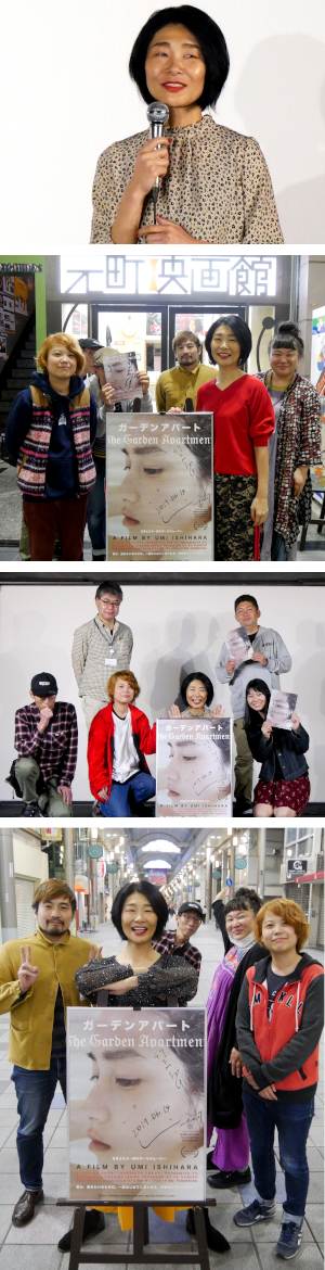 『ガーデンアパート』10/27(日)~29(火)の3日間、京子役を演じられた竹下かおりさんにお越しいただき、舞台挨拶を開催しました。年齢を重ね、今ではオファーはお母さん役ばかりという竹下さん、アル中気味で奇行を繰り返すエキセントリックな京子役を「絶対に私が演りたい!」と気合い十分でオーディションに臨み、見事射止められました。ビデオアーティストUMMMI.として活動し、本作が初長編映画となる石原海監督の現場はとにかく型破りで大変だったそうで、爆笑エピソードが次から次へと飛び出しました。最初に撮りたいイメージの写真がたくさん送られてきて、次にそこに少しの言葉を添えたものが送られてきて…と、イメージを具現化していく石原海監督独特の手法についてもお話しいただき、“普通の映画制作”ではないことが伺えました。普段のお母さん役からはかけ離れていますが、竹下さんご本人は少し京子さんのかおりもするカッコ良い女性でした!