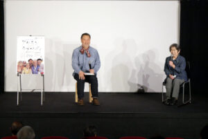 『アリランラプソディ ~海を越えたハルモニたち~』4/6(土)・7(日)の上映後、金聖雄監督の舞台挨拶を開催しました。4/6には、ハルモニたちが集う「ふれあい館」で日本語の読み書きのお手伝いをする鈴木宏子さんもご登壇くださいました。明るくたくましいハルモニたちと過ごす時間に励まされているという鈴木さん。ご出身校の名簿を見ても在日韓国・朝鮮人とわかる名前は見当たらず、本当の名前を名乗ることができずにいた同級生の存在に気付かずにきっと傷つけていたことを謝りたいと涙ながらに話されました。