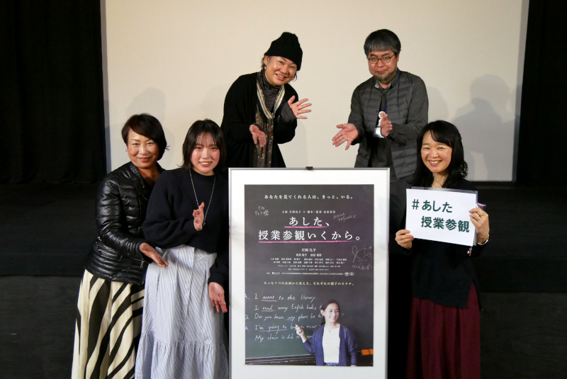 『あした、授業参観いくから。』2/9(水)の上映後、安田真奈監督と美術・宣伝を担当された三島彩香さんのトークを開催しました。通常、予算の少ない短編作品で美術として作り込むのは主人公の部屋くらいで、あとは外でのロケ撮影を活用したりします。ところが今回は同じセリフで家庭ごとの違いを表現する作品。「セリフが少ない分、映像に映る家の調度品や物の置き方などで各家庭の雰囲気と親子関係を伝えなきゃいけない。それが5家庭あったので大変でした」と三島さん。古い家に住んでいる家庭では、ロケ地となった家が本当に古くて電気がショートしたり、草むらでくっつき虫だらけになったり、床がブワブワだったりという苦労もあったそうです。「中学生男子の部屋はどんなだろうといろいろ調べたり想像したりして、キャラクターの行動からひとつひとつ置くものを決めていきました。“なんとなく”置いてるものは実はひとつもないんです」。長田区にある「ふたば学舎」でロケをした学校のシーンでは、安田監督の息子さんが小学校の時に描いた絵なども美術として活用されたそうです。そんなウラ話を聞いて、もう一度観返したくなりました。