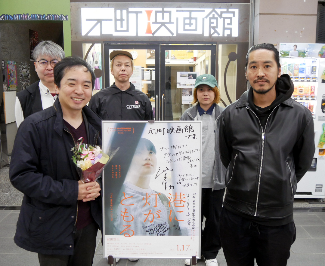 『ブラックバード、ブラックベリー、私は私。』2/16(日)の上映後、岸野令子さん(映画パブリシスト)、住田明世さん(元町映画館理事)のトークイベントを開催しました。トークの最初は感想から、「主人公エテロが魅力的だ」という住田さん。本作はジョージアの映画。3/8(土)から当館で上映する『蝶の渡り』もジョージア映画です。ジョージア映画の特徴として岸野さんは「抑えたユーモア」という部分を挙げられました。本作の中にある「ファンタジーとまでは言わないが、リアリズムから外れた描写」の場面をいくつか挙げられそれがジョージア映画の魅力である「抑えたユーモア」だと述べられました。舞台挨拶の中盤以降はお客様の感想をお聞きしながらの進行となりました。後半は同じジョージア映画の『蝶の渡り』を紹介とともに、本作『ブラックバード、~』をご鑑賞くださった皆様に観てほしい作品として3/29(土)から上映するイタリア映画『ドマーニ!愛のことづて』の紹介も行いました。