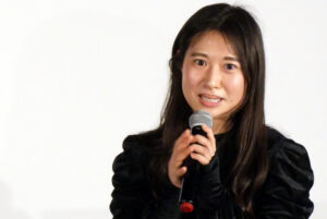 『飢えたライオン』(17)で主演俳優、『蒲田前奏曲』(20)ではプロデューサー兼出演者としてお越しいただき、今回初監督作で3度目の来場となる松林監督。どんどん立場が変わり、監督作でお迎えすることが嬉しいと司会の石田に紹介された松林監督は、「『蒲田前奏曲』のとき、舞台挨拶でラッパーになりたいと言いましたが、監督になって帰ってきました。フィメールラッパーとして問題提起をし、訴えていきたいという気持ちです」と前作と本作のつながりを説明されました。