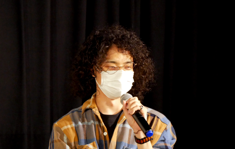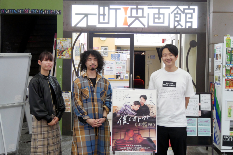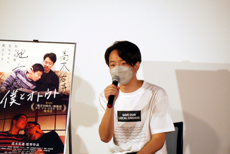『僕とオトウト』最終日の11/5(金)上映後、髙木佑透監督と、本作上映委員会のメンバーから中浦聡さん、植田萌さんにお越しいただき、トークを開催しました。本作は現役大学院生である髙木監督の作品ということもあり、また障害者である弟にカメラを向けた作品とはいえ“障害者映画”と枠を作ってしまいたくないという思いもあり、髙木監督自身が声をかけて学生中心に立ち上げた「上映委員会」で配給・宣伝のすべてを行っています。中浦さんは髙木監督とは「23年の付き合い」という幼稚園からの幼なじみ。誰よりも“髙木佑透”をよく知る人物でもあります。そんな中浦さんは本作を観て、「自撮りのシーンに並々ならぬ覚悟を感じた」と話されます。ちょうど観た時期に自身もいろいろな選択を迫られていたそうで、自分も覚悟を決めなきゃと影響されたそうです。植田さんは、教職を目指す中で障害者についての映像を観る機会があるけれどやはり暗さや重さがあり、苦手意識もあったと言います。でも本作は明るさがあり、“楽しい映画”として観ることができたそうです。大学入学と同時にコロナ禍になり、慣れないPC操作、増えない友人という状況に疲れ切っていたのが、上映委員会に入ってからは毎日笑えるようになったと話してくれました。髙木監督も「上映委員会という活動も含めてこの作品」と、委員会への強い思いを話されました。そして「最近池谷さんからは“愛弟子”と言われるようになり、ついに“愛”がつきました」という報告(?)で一週間のトークを締めくくられました。