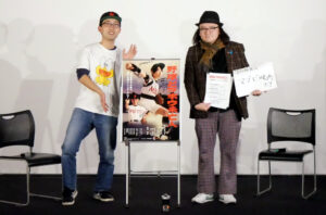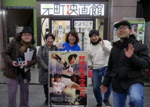 『野球どアホウ未亡人』1/2(火)の上映後、小野峻志監督、トークゲストに映画監督の西尾孔志さんをお迎えしてのトークイベントを開催しました。自身のYouTubeチャンネルで本作の解説動画をアップしている西尾さん。「監督たちはバカ映画と言っているのに営業妨害かもしれない」という言葉通り、真面目に映画的な面白さを解説する動画になっています。動画での解説を小野監督と共により掘り下げる形でのトークとなりました。”『野球どアホウ未亡人』のこの部分は、この監督のこの映画から影響を受けている”というように国内外の巨匠・名匠の名前が飛び交うトークに客席からも大きな笑い声が飛び、内容の濃さも相まって異様な熱気のトークイベントとなりました。