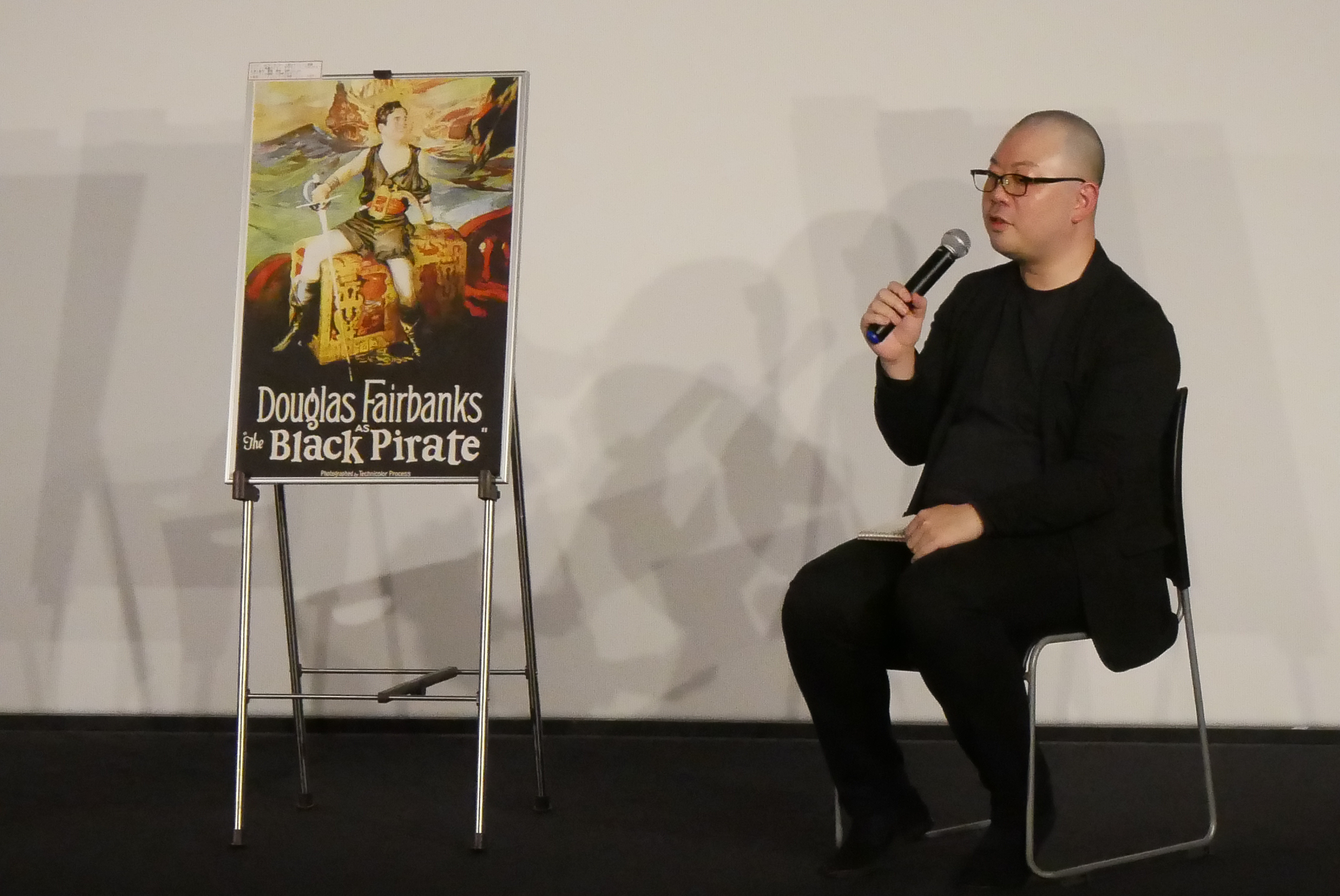 4/7(月)SILENT FILM LIVEシリーズ26『ダグラスの海賊』鳥飼りょうさんの生伴奏付き上映を行いました。今回『ダグラスの海賊』の伴奏をするのは初めてだったという鳥飼さん。初伴奏の感想をお聞きすると「思ったより体力のいる作品だった」と感想を述べられました。本作が作られた当時の映画業界は今のハリウッドとは比べ物にならないくらい”稼げる”業界だったそうです。本作は美術や持ち道具、小道具なんかも華やかでたくさん人も登場し言ってみれば「お金のかかった映画」。主演のダグラス・フェアバンクスも当時は大スター。稼いだら、その分次の作品に注ぎ込むような性格だったそうで、そういった意味でも視覚的にも楽しいサイレント映画となっているのではないでしょうか。アフタートークでは本作がカラー作品であることについても話は及びました。