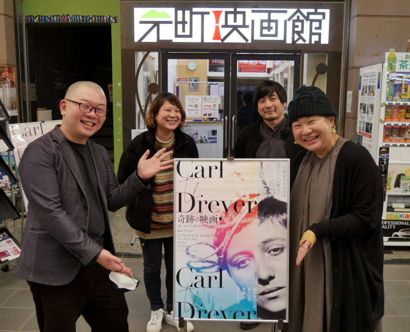 特集上映「奇跡の映画 カール・テオドア・ドライヤーセレクション」初日の2/12(土)『裁かるゝジャンヌ』上映後、サイレント映画楽士の鳥飼りょうさんのトークを開催しました。活動弁士と鍵盤奏者と一緒に、鳥飼さんは打楽器奏者として会社員をしながらサイレント映画の伴奏を始められたそうです。勉強のためにと様々なサイレント映画を観始め、そんな時に紀伊国屋書店からリリースされた『裁かるゝジャンヌ』DVDを観て「弁士の言葉がなくても、映像と音楽だけでこれだけ雄弁に語れるんだ」と衝撃を受けたと話します。この盤の演奏は、関東を中心にサイレント映画の伴奏で活躍される柳下美恵さん。この衝撃をきっかけに鳥飼さんはピアノ単独で伴奏をされるようになり、会社を辞めて専業の楽士として独立されるまでになったので「人生を変えられました」と笑われます。今回の上映の演奏は、ポーランド出身のオルガニスト、カロル・モサコフスキによるパイプオルガンでした。ジャンヌの心情の変化を細やかに掬いとる柳下さんの伴奏とはまったく異なり、もっと俯瞰した、言ってみれば“神の視点”のような伴奏で、それはジャンヌ・ダルクという存在に対して宗教などを絡めた視点の違いかもしれないと感想を述べられました。本作のみならずサイレント映画ならではの楽しみについてもお話しいただきました。