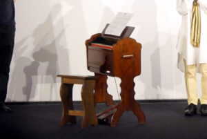 8/2(土)『風琴』上映終了後、黒瀬政男監督、プロデューサーの善沢志麻さん舞台挨拶を開催しました。舞台挨拶は善沢さんのリードオルガンの演奏からスタート。演奏が終わり、黒瀬監督からは「リードオルガンというのは自分たちの世代だと小学校にある学校のオルガンだった。でも若い人たちはほぼほぼリードオルガンの存在を知らない。そういう中で映画製作を始めました」と最初にご挨拶。「映画製作に携わることでリードオルガンは面白い楽器で新しい発見があった」ともお話しされていました。プロデューサーの善沢さんは音楽関係の仕事をされておられ、黒瀬監督とは20年来の付き合い。和久井輝夫さんの姿を記録として残しておきたいと思った時に黒瀬監督に声をかけられ映画製作がスタートしたとご説明。「まさか映画館で上映する映画になるとは」と笑いまじりにおっしゃられていました。この日客席には映画に携われた関係者のほか出演もされている日本リードオルガン協会会長の中村証二さんの姿も。中村さんにもリードオルガンで一曲披露していただきました。