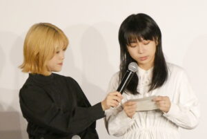 日本は若年層の自死が多く、野田監督もご自身のそうしたことに触れた体験から着想を得て本作を制作されました。俳優としても活動する野田監督は、ある時現場で出会った八木さんと話していて、共通する体験があり向かいたい方向が同じだと感じ、ミナ役をオファー。八木さんは初主演に不安はあったものの、当て書きしてくれたので演じやすかったと話されました。本作が初演技だという佐久間さんは、楽器を弾く役割として参加を求められたのだと思っていたら主要キャストで驚いたそうです。クライマックスシーンの演奏シーンでマスクを外す動きが印象的だというお客さまの声もありました。
