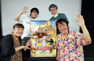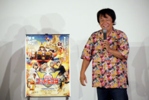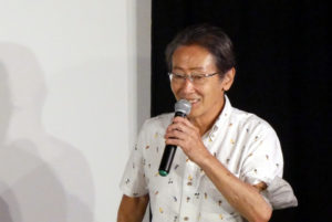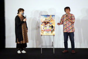 『超伝合体ゴッドヒコザ』8/21(日)の上映後、河崎実監督にお越しいただき舞台挨拶を開催しました。本作は愛知県幸田町の“町おこし映画”として制作されたと河崎監督。幸田町はゆかりのある庶民のヒーロー、大久保彦左衛門を冠した「彦左(ひこざ)まつり」を平成元年から行なってきましたが、コロナ禍となりお祭りもできない状況が続き町の活性化にと映画制作に乗り出したそうです。河崎監督は幸田町で大久保彦左衛門を模した「彦左こけし」を見て、本作を着想されました。お寺の境内で見つけた不思議なこけしを主人公の男女が空にかざすとこけし型ロボットに変身します(さらなる完成形は武将型ロボット)。この男女ペアというのは、今年放送から50年を迎えた「ウルトラマンA」に想を得たそうで、「A」に出演されていた佐野光洋さんも本作に出演されています。そしてこの日は河崎監督とは20年来のお付き合いだという神戸在住の名優・堀内正美さんがご来場されており、河崎監督の呼びかけ(無茶ブリ?)でご登壇いただきました。「自分が出てないからゆっくり映画を楽しめた」と堀内さん。「奇を衒わず、特撮の技法をちゃんと丁寧に実践して映画として見せるところが河崎作品の何よりの魅力」と話されます。特撮を撮りたい人には教科書のような映画とも。舞台挨拶後のサイン会も盛り上がり、強い印象を残すエンディングテーマ「ゴッドヒコザ音頭」も収録されたサントラCDは完売しました。