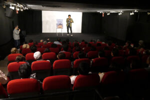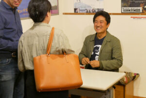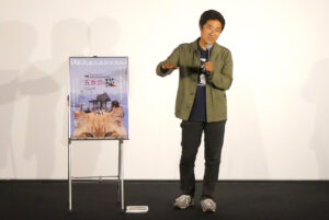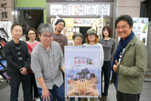 『五香宮の猫』11/4(月)の上映後、想田和弘監督の舞台挨拶を開催しました。この日も舞台になった牛窓から元町映画館にやってきたという想田監督。「猫たちに餌をやってから来ました」と想田監督が言うとお客様からも笑いが漏れました。『港町』『牡蠣工場』の撮影で訪れたのをきっかけに移住したという想田監督。本作の五香宮も「歩いて10秒くらいの近さ」だそうです。今までの想田監督の作品にも猫は度々登場しており「猫が街を歩いていると撮らないと言う選択肢がなかった」と笑いまじりに話されていました。「五香宮に3、4日張り付いて見るといろんな人がいろんな理由でやってくる、この場所でカメラを回してみたら」と2年近くの撮影期間を経てこの「五香宮の猫」が完成したそうです。想田監督の「観察映画の定義」についても話は及び、「よく見て、よく聞く。じっくりとカメラを向けることによって何か面白いこと、ドラマが起こっている」とお話しされていました。
