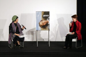 『グレース』11/16(土)の上映後、扇千恵さん(ロシア映画紹介者)、岸野令子さん(元町映画館社員)のトークイベントを開催しました。トークではまず最初に実際のロシアの地図を資料としてお配りし、映画の中で2人が旅した道のりを振り返りました。原題『Блажь | Blazh』について話は及び、本来の言葉の意味を考えると疑問であると扇さん。岸野さんは「反語としてつけたのでは」とおっしゃられていました。セリフが少ない本作ですが、「本人たちも喋らないのでこっちが想像するしかない」と岸野さん。トークの中盤以降「この映画に希望があるのか?」というテーマで話は盛り上がりました。トークをお聞きくださったお客様にとっても理解が深まるトークになったのではないかと思います!