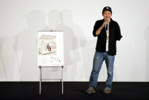 『はこぶね』11/4(土)の上映後、大西諒監督の舞台挨拶を開催しました!本作は大西諒監督の初長編作品。30歳まで会社員をしていたという大西監督はその当時は「まさか映画を作るとは思っていなかった」そうで、一念発起して映画美学校に通い始め本作の基となる短編の企画ができたそうです。2020年、短編として作ろうとしていたところ、主演となる木村知貴さんが脚本を気に入ってくれて一緒に作っていくことになったそうです。そんな最中にコロナ禍になったことがきっかけで、本作を長編として撮る方向へシフト、本作が出来上がったそうです。木村さんとは「一緒に高め合いながら作った」とおっしゃった大西監督。視覚障害の人物が主人公であることについては、大西監督自身が双極性障害になった時に「自分の体がコントロールできなくなることが最初はショックだったが、次第にその”不自由さ”を楽しめるようになってきた」そうで、そういった視点から自分と異なる身体感覚の人物を知る・想像することを軸に物語を紡いでいったとのことでした。伊藤亜紗さんの著書『目の見えない人は世界をどう見ているのか』との出会いも大きかったとおっしゃられていました。