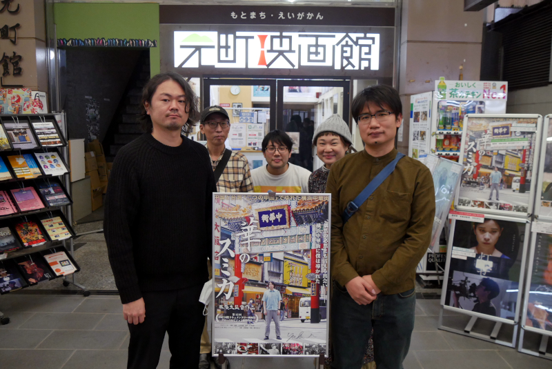 『華のスミカ』初日の11/13(土)上映後、林隆太監督とプロデューサーの直井佑樹さんの舞台挨拶を開催しました。15歳のときに父親が中国人だと初めて知った林監督。当時は中国に対しネガティヴなイメージしかなく、周囲の友人らにはとても言えずに隠していたそうです。その後、祖母が認知症となり、父の体調不安もあって「今このことと向き合わなければ」と取材を始めたそうです。母方の親戚のことはよく知っているのに父方のことは何も知らない、それは親不幸なことと感じたと話されます。日本映画学校で林監督と同級生だった直井さんは、ご自身が香港で育ったということもあり、林監督の企画に興味を持たれたそうです。プロデューサーという肩書ではありますが、大半の撮影を担当されていたり編集を林監督とふたりでされたりと、ずっと作品に伴走してこられました。神戸に取材で訪れた9年ほど前に偶然元町映画館の前を通り、「中華街に近いこの映画館で上映できたらいいな」と話されていたそうです。元町映画館ができて1~2年ほどのころです。また、〈華僑〉という言葉は線を引かれたように感じるとも林監督。外国では「日系ブラジル人」「日系アメリカ人」などという表現をするのに、日本国内ではなぜ「中国系日本人」と言わないのか。ふだん何気なく使っている言葉にも、相手との間に線を引いているのかもしれないと気づかされる言葉でした。