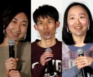 2015年12月のロードショー公開以来、毎年恒例となった年末の『ハッピーアワー』上映。公開から5周年となる2020年も無事に上映を行い、元町映画館営業締めとなった12/30(水)の上映後には、舞台挨拶を開催することができました。登壇者は濱口竜介監督と、出演者から菊池葉月さん、柴田修兵さん、出村弘美さん、坂庄基さん、久貝亜美さん、田辺泰信さん、スタッフから野原位さん、斗内秀和さんとたくさんの方が駆けつけてくださいました。舞台上が“密”になることを避けるため、数名ずつ登壇するといういつもとは違う形でしたが、それぞれの近況と、〈今振り返る『ハッピーアワー』〉というテーマでたっぷりとお話しいただきました。意外と「恥ずかしくて…」と公開以来作品を観返していないというキャスト陣でしたが、ワークショップではとても大事なことをやっていたんだとコロナ禍の今だからこそ気づいたと口々に話されました。濱口監督いわく「こんな映画づくりはたぶんもう二度とできない」という『ハッピーアワー』。監督やキャスト、スタッフのみなさんにとってもそうであるように、元町映画館にとっても特別な存在であり続けます。また来年もみなが健やかで集まれることを祈らずにはいれない時間でした。