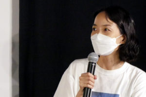 『距ててて』8/29(月)の上映後、本作を企画・製作した加藤紗希さん(監督/アコ役)と豊島晴香さん(脚本/サン役)にお越しいただき、トークを開催しました。ともに俳優として活動しながら、監督と脚本を務め[点と]というユニットで映画にまつわる活動もするおふたり。加藤さんはダンス、豊島さんは舞台とそれぞれ活動の場を持ちながら映画美学校アクターズ・コースに通った同期生です。俳優としての学びをする中で「もっと“映画”のことを知りたい」という情熱に衝き動かされ、卒業してまもなく映画を撮ってみることにした加藤さん。授業で面白い脚本を書いていたという豊島さんに声をかけ、短編『泥濘む』を完成させます。「初期衝動の塊」と照れながら話されるこの作品がPFFに入選したことで、長編への欲求も生まれたそう。字面も印象的な「距ててて」というタイトルや、本作を構成している四章それぞれにつけられたサブタイトル「ホーム」「かわいい人」「湯気」「誤算と憧れ」についてその意図と思いをお聞きしました。「湯気」と名付けられ美味しそうなお料理が次々に登場する三章では、湯気をどう映すかこだわったという裏話も。四章のサブタイトルに隠された秘密(?)は聞いて驚きましたが、気づいた人もいるとか。すごい!それぞれのキャラクターや得手不得手の違いで、うまく役割分担ができているおふたり。とても素敵なユニットだと感じました。今後の活動にも期待しています!