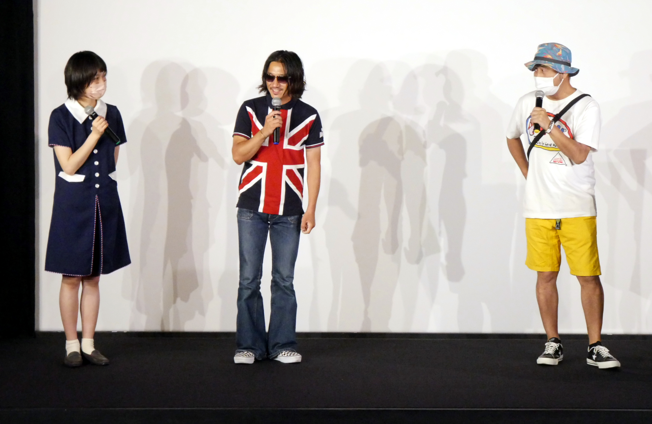 『犬ころたちの唄』8/7(日)の上映後、前田多美監督、ロック漫筆家の安田謙一さん、画家・DJのキングジョーさんにお越しいただき、トークを開催しました。主演の深夜兄弟の3人がブラックスーツ(喪服)を着て立っている本作ポスターが『レザボア・ドッグス』のようだと安田さん。すると前田監督は「『レザボア・ドッグス』みたいな映画を作ろうと思って、撮影に入る前にこの写真を撮ったんです!」と話します。兄弟それぞれの短編を撮って出ししながら長編の準備を進めるという方法で作られた本作、「気付いたら脚本フォルダに60ファイルあった」そうで、改稿に改稿を重ねるうちになぜだかどんどん“和”の風味が強くなってきたと前田監督。でも「高野豆腐の後味のような映画を作りたかった」とも言われていたので、やりたいことを突き詰めた結果なのでしょう。また、前田監督ご自身が葉月を演じたことについて、「前田監督自身が“ここにいたい”と思える場所を自ら作っているように感じる」と安田さん。前田監督は「バレてる!初めて指摘されました」と驚きの表情を浮かべます。自らの望む世界を作品として表現されているということなのかもしれません。次回作は?と尋ねられた前田監督の答えは「次はハムカツの後味のような映画にしたい」。「期待しにくいわ!」と安田さんがツッコミます。キングジョーさんがアートワークを手掛けられたJackyさんのアルバム「大人になってしまった」には、なんと「KING JOE」というジョーさんのことを唄った歌も収録されています。CDの盤面もジョーさんの絵でめちゃくちゃ素敵なのでぜひ!