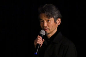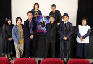 『自分革命映画闘争』3/18(土)の上映後、石井岳龍監督、そして神戸芸術工科大学にて石井教授を支えた歴代助手である山本忠宏さん(出演)、武田峻彦さん(出演・撮影・照明・編集)、チョナヨンさん(出演)、谷本佳菜子さん(出演・美術)、門前咲良さん(出演)の舞台挨拶を開催しました!歴代助手の皆さんを前にして石井監督からはまずはじめに「この映画を作れたのも皆さんのおかげ」という言葉が。石井監督が芸工大で教授を務められた17年間の授業を凝縮したような映画だったと歴代助手の皆さんが口々に語られました。企画が立ち上がるタイミング、そして現在は助教授として学校に残られている武田さん、当時助手をしていた谷本さんにまず最初に『自分革命映画闘争』の企画について相談したという石井監督。「大変な現場だったが、劇中と同じように、暗闇の中を歩いているようで不安になることもあったが、光が見えてくる。石井さんとまた映画を作りたい」と公開を迎えて振り返られる武田さんの言葉も印象的でした。劇中でもコロナ禍が描かれており、実際に撮影も中断したことについて石井監督は「映画は密なコミュニケーションなのに、(コロナ禍で)何をやるのか。初めて自分の考えを言葉としてまとめる機会にもなった」と語られました。「配信で映画が見れる時代だからこそ、映画館とはなんだというのを考えるきっかけになれば」と力強い言葉で石井監督が舞台挨拶を締めくくられました。