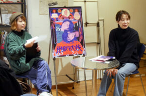 1/25(土)から当館で始まった韓国映画『地獄でも大丈夫』はいじめに悩まされて自殺をしようとして失敗し、復讐のための修学旅行を企てる女子高生二人のロードムービーで、公開二日目に神戸松蔭女子学院大学の金智英(キム・チヨン)先生をお迎えしてトークイベントを開催しました。キム先生には一昨年『AFTER ME TOO』という韓国映画で生徒達と発表会イベントをしていただき、その時の日本と韓国の比較対照など素晴らしい内容でした。今回は生徒達の世代が主人公の韓国映画をどうご覧になるかお聞きしたくお招きしました。