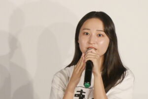 7/6(日)『事実無根』の上映後、東茉凜さん、柳裕章監督の舞台挨拶を開催しました。オーディションを経てメインキャストに抜擢されたという東さん。柳監督に「東さんを抜擢した決め手は?」という質問が飛ぶと「過去出演作を見て、一時間くらい時間をかけてオーディションをやった。最後の長台詞のお芝居と実際のお父さんとの思い出を聞いたりもしました」と柳監督。東さんの実体験が脚本に乗っている箇所もあるそうです。逆に東さんには「オーディションで印象に残ったことは?」と聞かれると「一人一人時間をかけてオーディションしてくださってとても有り難かった」と回顧。「何本もオーディションを受けていたので、受かると思ってなくて。受かった時は不安も大きかった」ともおっしゃられていました。撮影時のエピソードとして印象に残ったのはキャベツの千切りのシーンだったという東さん。そのシーンの裏話も飛び出し、和気藹々とした舞台挨拶となりました。