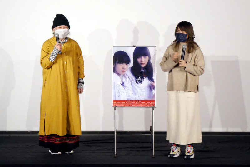 『息をするように』公開記念として2018年の上映以来の再上映となった『少女邂逅』。1/28(金)の上映前、枝優花監督の舞台挨拶を開催しました。本作は枝監督の初長編作品ですが、実はその脚本は自身の体験をもとに18歳の時に書いたものでした。大学で映画サークルに入りその脚本を先輩たちに見せたところ、「この映画の面白さをちゃんと撮りきることが今の自分たちではできない」と、もっと時を重ねてから作った方が良いと言われたそうです。その後2017年のMOOSIC LABに企画を出すことになり、大好きなミュージシャン水本夏絵さんとのコラボで本作を制作されました。5年越しに蘇ったこの物語は日本だけでなくアジア各国で女の子たちからの熱狂的な人気を博し、今でも愛され続けています。香港、韓国、スペインなど世界各国の映画祭にも出品され、日本とは異なる文化圏での思いがけない受け止められ方や質問に出会い、【映画】が内包するものの大きさを体感したと話されました。ダブル主演を務めた保紫萌香(現・穂志もえか)さんとモトーラ世理奈さんの現場でのエピソードや不思議な絆と関係性など、貴重なお話も聞かせていただきました。