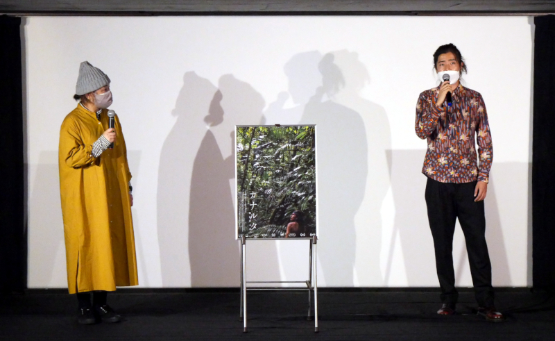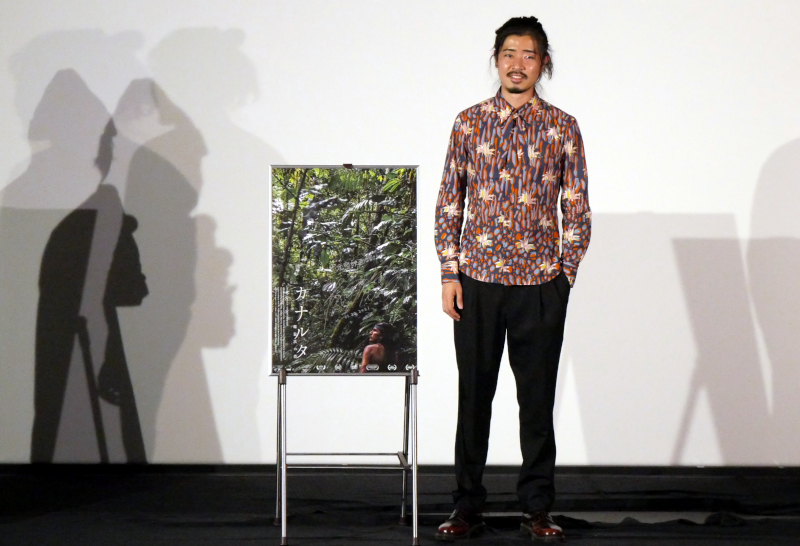 『カナルタ 螺旋状の夢』初日の11/20(土)上映後、太田光海監督の舞台挨拶を開催しました。神戸大学国際文化学部出身の太田監督、神戸での凱旋上映に感慨深げです。神戸大学の後はフランス・パリ社会科学高等研究院人類学修士課程に進み、このときにシネマテーク・フランセーズに通い詰め映画を浴びるように観たそうです。その後はイギリス・マンチェスター大学グラナダ映像人類学センターで「映像人類学」を学び、アマゾン熱帯雨林で1年間にわたり先住民であるシュアール族の村での調査・滞在撮影により本作を完成させました。「人類学の研究と映画への愛、現時点での自分の集大成」と話されます。日本で暮らす私たちとはまったく異なる文化を持つシュアール族との暮らしは、驚きの連続でした。森は地面がデコボコで泥濘も多く、倒木や垂れた蔓、トゲのある植物などで最初は足元をよく見ながらでないととても歩けなかったそうです。森を進むセバスティアンを追うカメラの映像などは、その暮らしにだいぶ慣れて速く歩けるようになってから撮影したものだと話されました。お客さまからも、見たことのない文化に触れられたと映画から受けた驚きの感想も聞かれ、「人生が変わった」と話される方もいらっしゃいました。
