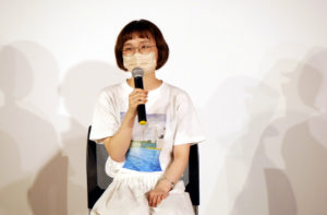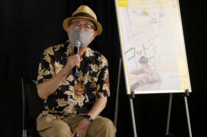 『コットンダイアリー』7/15(金)の上映後、尾松琴音監督と、甲南女子大学メディア表現学科教授の馬場伸彦さん、池谷薫さんにお越しいただき、トークを開催しました。“コットン”こと尾松監督は、メディア表現学科に入って最初に学んだのは写真で、その際に馬場さんに師事されました。一眼レフカメラの基礎を学ぶために馬場さんが開催した〈カメラを持って街歩き〉ワークショップで、10数名の参加を予定していたのが当日集合場所に現れたのが尾松監督ひとりだったそう。「フレームの中に自分の世界への関わりが表れるのが写真の面白さ」と馬場さん。「琴音さんは、色というか空気感に対するこだわりが強い。ひとつの“絵”として考えた写真を撮る人」と話します。尾松監督も、映像の前に写真を学んだことで、本作でも画角やフレームに入る物や人のバランスを考えられたと学びの成果を感じられていたようです。また、馬場さんは本作のサウンドスケープに注目し、舞台となった尾松監督が暮らす小野市の「雑音のなさ」に感動したと話されました。映像、写真、イラスト、そして作中では作詞やボーカルも手掛けた尾松監督は、「メディア表現学科そのもの」と池谷さん。同大学の魅力もアピールされました。アーティスト・コットンを育んだふたりの教授とのトーク、3人の無理のない自然な距離感がとても魅力的でした。