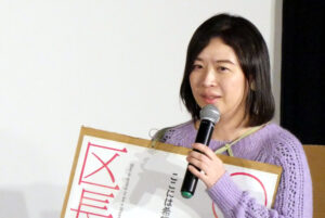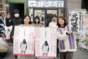 『映画 ⚪︎月⚪︎日、区長になる女。』2/10(土)の上映後に、ペヤンヌマキ監督の舞台挨拶を開催しました。映画本編にある通り、杉並区民で、現在も住まわれている自宅アパートが道路拡張計画の区域にかかっていて立退になってしまうというところから、今まで興味を持っていなかった区政のことを調べ始めたというペヤンヌマキ監督。インターネットで調べるうちに「住民思いの杉並区長をつくる会」という団体を発見し、ビラ配りなどのお手伝いから始められたそうです。投票率も低く、たくさんの人に岸本さんの存在を知ってもらいたいというところから、YouTube動画としてアップするのを目的にカメラを回し始めたそうです。岸本さんを追ってるうちに、いろんな人が集まってきて、その”人間模様”が面白く感じられたというペヤンヌマキ監督。撮り続けるうちに「ドキュメンタリーとして映画にしたい」という気持ちが湧いてきたそうです。1本の映画にするにあたって「皆に届けるにはどうすればいいか」という点についてペヤンヌマキ監督は「自分自身の猫と亀との生活を守りたいから動き始めた。その一歩が岸本さんの選挙につながって、集まってきた一人一人の話につながって、一人一人の生活の話という風に編集を進めた」とおっしゃられていました。