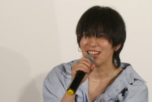 7/5(土)『くまをまつ』の上映後、平野鈴さん、内田周作さん、滝野弘仁監督の舞台挨拶を開催しました。石川県小松市で撮影された本作。本作に登場する石切場も古民家もそこにある実際の場所で、古民家は滝野監督の亡くなった祖父の家を使って撮影したそうです。脚本を書いたのは2022年、その古民家に2ヶ月くらい泊まり込んで執筆し、2023年に撮影したとのこと。滝野監督自身の幼少期の思い出や、祖父とのエピソードを盛り込んで脚本が書かれたとお話しされていました。ややこを演じた平野さんから滝野監督に「どれが本当のエピソードで、どれがフィクションとして作り込んだ部分なのか」という質問が飛ぶと、滝野監督は「予告編にも使われている冒頭の車窓から山の穴みたいなところを見るシーンは実際の幼少期の思い出」と返答。「祖父も戦争に行っていた。当時の写真を見せてもらったこともあって」とフィクションとして作り上げた部分にも言及されていました。本作は余白の多く、一見すると”わからない”部分も多い作品では平野さんも内田さんも撮影中に役柄について監督に聞いたりすることはなかったとのこと。舞台挨拶終盤では終盤の印象的な卓球のシーンについてお客様から質問が飛び、そのシーンに参加していない内田さんから観客として深い考察や、実際そのシーンを演じた平野さんからはそのシーンの時どういう気持ちでややこを演じていたのか興味深い話が飛び出しました。