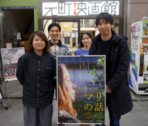『マリの話』3/10(日)の上映後に、高野徹監督の舞台挨拶を開催しました。濱口竜介監督の『ハッピーアワー』で助監督を務められた高野監督は撮影当時の約半年間神戸に住み、元町映画館に映画を見に来てくださっていたというご縁もあり、「監督作をかけてもらえて嬉しい」と最初にご挨拶されました。4章構成の本作ですが、撮影順としては4章目の「マリの映画」にあたる短編をまず作り、高野監督としては「今までにないものができた」とご自身で手応えを感じたそうですが、「これだけお客さんに見せても伝わるのか」という思いもあって、4章目に繋げていく形で1章から3章を付け足していくという製作方法だったそうです。2章はコロナの影響で出演者が現場に来れないかもというところから撮影前日に思いついたエピソードだったり、3章ではキーワードを入れると物語を作ってくれるAIから出てきた「猫のダンス」というワードを広げていく形で作られたり、本作の持つ不思議な魅力を解剖する手掛かりになるエピソードがたくさんお聞きできた舞台挨拶でした。