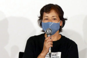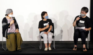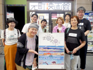 8/21(金)に元町映画館が10周年を迎えることを記念しての『まわる映写機 めぐる人生』上映初日の8/15(土)上映終了後、森田惠子監督と元町映画館スタッフで「映画館」を考えるトークイベントを開催しました。最初に元町映画館設立発起人の堀忠が登壇し、この度のコロナ禍では設立時と同等のご支援が集まったこと、これからは地域の人々が守っていく映画館になっていくべきこと、いろんな方々にいろんな関わり方をしてほしいというお話をしました。そして堀と交代で、オープン時から責任者として映写室を守り続け、経理も担当し、現在は代表理事でもある高橋勲が登壇し、コロナ禍でいただいたご支援の詳細を報告し、銀行で記帳をしながら感激で涙がこぼれたことなどを話しました。身にあまるご支援に、「もっと良い劇場にしていかなくては」とやや気負っていたスタッフに、「今のままでみんなが支援したくなる劇場だということですよ」と森田監督。「困った時には平気な顔をせずに、困った顔をして助けられることが大事」と話してくださいました。