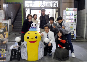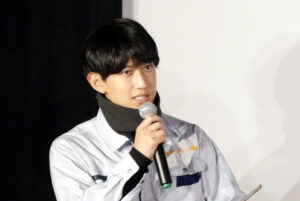 『帰ってきた宮田バスターズ(株)』12/3(土)の上映前、佐田淳さん、水野祐樹さん、蒔野まりんさん、島原大知さん、坂田敦哉監督、(そしてタンクくん)の舞台挨拶を開催しました。坂田監督が19歳の時に製作した短編版の『宮田バスターズ(株)』が全国各地の映画祭で入選したのをきっかけに長編を作りたいと製作したのが『宮田バスターズ(株)-大長編-』。そこから短編『タンクくん誕生』の併映と長編の追撮をし再編集したのが今作『帰ってきた宮田バスターズ(株)』となりました。佐田さん、水野さん、蒔野さんの地元が神戸ということもあり、たくさんのお客様にご来場いただきました。上映前の舞台挨拶ということであまり内容には触れることはできないながらも、「DIY映画」を謳っている本作、セットの壁も床も、そして天井までもが手作り。劇中でも印象的な宮田バスターズ(株)の社用車は、映画の中ではそこまで映ってないながらも中身も作り込まれているそうです。マエカワコンサルタントの社内には滝が流れていて映画の中では綺麗に映っているが、実際の現場はホースで水を流していて音が凄く、マエカワ役の水野さんは声を張り上げて芝居をした、という裏話も飛び出しました。最後は島原さんの”号令”で舞台挨拶は締めくくられました。