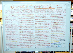 映画研究者である中村紀彦さんをファシリテーターに、映画を通して“開かれた対話の場”をつくりだすことを目指す企画〈元町映画館オープンダイアローグ〉。1/28(土)に#02【映画『フタリノセカイ』とパートナーシップ制度】を開催しました。会場はこうべまちづくり会館4Fにある「まち活拠点 まちラボ」。まずは自己紹介と〈24時間以内に体験した幸せ〉をそれぞれ話しアイスブレイク、まちラボで飲める「アップル」「マスコット」などの“地ジュース”やコーヒーを飲みながら和やかな雰囲気でスタートしました。なぜ今回パートナーシップ制度をテーマにしたかというと、劇中のユイと真也が幸せに生きられる希望の一つとしてパートナーシップ制度について考えたいということと、それがなぜここ神戸市では実現できていないのかも知りたかったからです。中村さんは市職員でもあるので、行政への疑問をぶつける良い機会になればと思いました。興味を持ってくださった市職員の女性2名も参加してくださいました。現時点で神戸市にはそれを担当する部署がないことが最大の問題のようですが、今の市長なら実現の可能性もあること、どんな作戦を立てれば良いかについても話しました。また、たとえば趣味の集まりなど、楽しさを共有する場所ではさまざまな垣根は取っ払われるという意見もあり、そういった場づくりの重要性も感じました。