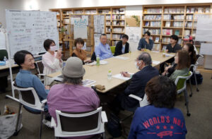 映画研究者の中村紀彦さんをファシリテーターに、映画を通して“開かれた対話の場”をつくりだすことを目指す企画〈元町映画館オープンダイアローグ〉。こうべまちづくり会館4Fにある「まち活拠点 まちラボ」にて、4/20(日)に#04【映画『フジヤマコットントン』から“働く”ことを考える】を開催しました。1年ぶりの開催で、『フジヤマコットントン』の青柳拓監督をゲストにお迎えし、8名の方に映画後鑑賞後ご参加いただきました。