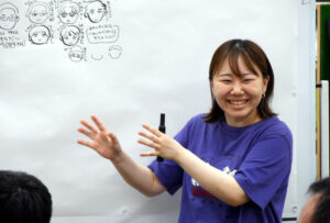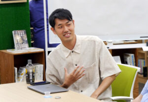 映画では、市民や市職員の姿が見えずモヤモヤしたという中村さんの言葉に、みなさんも政治や行政との距離感などを話してくれました。もっと知りたい、近づきたいと思いつつも日々忙殺される中で叶わないというのが本音のようです。「議会が“議論”する場になっていないことがそもそもの問題」「石丸さんには二期目の選挙にも出て、自分のやってきたことが市民にどう届いたのかを見せてほしかった」などのご意見には深く頷くばかりでした。生活の中でどう接点を持つか、また行政はSNSやYouTubeなど若い世代にもなじみのあるツールをどう活用するかという話題でも意見を活発に出し合い、アメリカでの子育て生活で触れた政治との距離の近さなど、貴重な体験談も聞けて有意義な場となりました。