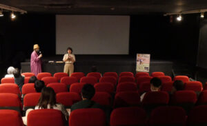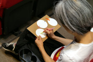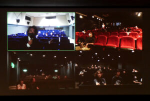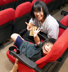 「夏休みの映画館2023」初日の7/29(土)、「世界のアニメーション作品集」として7本の短編アニメーションを上映しました。最初に同プログラムを上映する全国のミニシアターとZoomで繋いでスクリーンに映し出しました。お客さまも手を振ったりしてくださり、“みんなで観る”という雰囲気が高まります。今日はシネマ・ジャック&ベティ(横浜)、シネマテークたかさき(群馬)、Denkikan(熊本)、そして神戸の元町映画館の4館で繋いでお話ししました。他地域の映画館にも行ってみたい!上映後は藤森みわこさんによるワークショップを開催。映画やアニメーションなど、“動く画”の原点と言われる「ソーマトロープ」を作ります。蛍光ペンで描いてブラックライトを当てると光るというアイデアで、映画館ということから着想されたそうです。スマホで簡易ブラックライトを作る方法も教えてくださったので、家でも楽しめそうです。大人も子どもも集中して作業している姿が印象的でした。最後には参加者の作品の発表!アイデアも多彩で素敵な作品ばかり!とても楽しい時間でした。