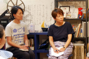 まずは、映画の老夫婦のように小さくともささやかな暮らしからラブ&ピースが生まれるというお話や、日常の中で急にあと3分で原爆が落ちると言われたらどうすればいいのか、こういう戦争が起きないようにするにはどうすればいいのかと思いながら観ていたと、お客さまから感想を語っていただきました。また、戦争のことを知るという上で、映画館の果たす役割が大きいとのお声もいただきました。