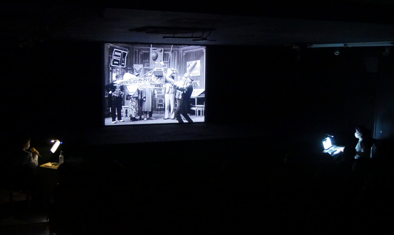 「夏休みの映画館」2日めの8/22(日)は、大森くみこさんの活弁と天宮遥さんのピアノ生演奏付きサイレント映画3本立て上映を開催しました。上映作品は、まるで現代のマナーCM?!な巨匠D.W.グリフィス監督の『迷惑帽子』、ジョルジュ・メリエス監督の北極探検モノ『極地征服』、バスター・キートンのNo.1ヒット作『海底王キートン』。10名ほどの子どもさんを含め、サイレント映画を初めて観るという方が1/3ほどいましたが、上映中は笑いが絶えません。みんなの笑いをうまく引き出す大森さんの絶妙なセリフ回しとツッコミ、軽快ながら場の雰囲気をリードする天宮さんのピアノで大いに楽しみました。弁士は自分で台本を作り、キャラクターを考えながらセリフや口調を決めていくそうです。そのため、弁士によって同じ登場人物でもキャラが変わったり、ストーリーの重心を置く場所が異なったりするのもサイレント映画の面白さのひとつ。弁士ごとにファンがつくのもそういった個性が見えるからなのでしょう。そしてピアノは、すべて即興で弾くのだそうです。映画の場面はもちろん、弁士さんの言葉を拾ったり雰囲気を汲み取ったりもしているのだと話されました。