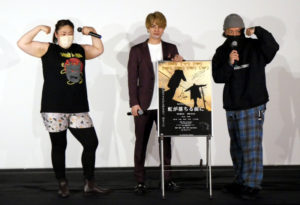 『虹が落ちる前に』初日の3/26(土)上映後、Koji Uehara監督、バンダリ亜砂也さん、ぢゃいこさんにお越しいただき、舞台挨拶を開催しました。ミュージシャンとして活躍しながら、子どもの頃から大好きだった映画制作に乗り出したKoji Uehara監督。初長編作となった本作がこうして各地の映画館で公開されることがとにかく嬉しく、お客さまに観てもらって映画は完成するんだと実感していると話します。高倉健さんが好きで、演技の巧拙ではなくその佇まいで“魅せる”役者を好むという監督。バンダリ亜砂也さんは、ふと見せるギラついた表情が魅力的だと本作の出演に誘われました。監督やプロデューサーが「一段上からジャッジする」ようなオーディションは好まず、自分の眼力を信じてひとりひとり個別に声をかけて出演に至ったというから驚きです。「映画に出てくる男性の中に推しはいるか?」という監督からの問いかけに、「イケメンは全部同じに見える。私は男性の筋肉が好きなのでこの中にはタイプはいないです。今日も新日本プロレス見た帰りに寄りました!」と会場を笑わせるぢゃいこさん。「イケメンの見分けがつかなくなったら監督を見てリセットしてた」との発言に、「俺もある界隈ではイケメンの部類と言われるんやけど…」と監督。現場の雰囲気の良さ、そして監督の映画への熱い思いが伝わる舞台挨拶でした。