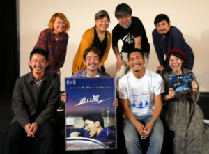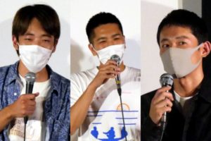 音楽×映画の祭典「MOOSIC LAB 2019」から単独公開を果たし、地方上映のトップバッターとなった神戸での『追い風』10/3(土)・4(日)上映後、安楽涼監督、DEGさん、柳谷一成さんの舞台挨拶を開催しました。前作『1人のダンス』上映時に一週間車中泊で滞在し、所縁のない神戸で友人・仲間を増やしていった安楽監督。「おかえりなさい!」の声とともに、拍手で迎えられました。本作は、安楽監督の小学生からの親友であるDEGさんに実際に起きた出来事をベースにしています。いつも他人を楽しませようとばかりするDEGさんが、まるで自分と闘うように“自分のために”歌う姿に胸を衝かれ、その瞬間を映画にしようと企画がスタートしました。向き合いたくない自分、逃げ出したいことだらけの脚本に「本当にキツかった。でもいま振り返ると気づきもたくさんあって、やって良かった」とDEGさんは話します。「出演シーンが多いわけではないこの作品のために神戸まで来たのは、ふたりがいるから」と柳谷さん。〈安楽組〉の強い絆を感じさせます。「“これから”が暗いのは嫌なので、良い未来を信じたい。これからのDEGを見てほしいし、この映画が自分にとっても映画館にとっても“追い風”になってほしい」という安楽監督のまっすぐな思いに、場内からは惜しみない拍手が贈られました。