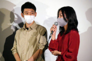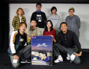 『追い風』10/7(水)の上映後、安楽涼監督とDEGさん、映画チア部の大矢哲紀さんと堅田真風さんによるトークを開催しました。映画チア部は、関西でミニシアターを応援する学生団体です。東京にいても学生に映画を観てもらう機会がほとんどないと、安楽監督たっての希望で実現しました。「自分にも笑ってごまかして済ませる部分があり、ちゃんと向き合わないとと思った(大矢)」、「辛いときも笑うDEGさんの笑顔に社会人としての厳しさや辛さを感じた(堅田)」との学生らの感想に、「自分に重ねて観てくれることは嬉しい。笑ってごまかすことは悪いことじゃないと思っているし、社会はそんなに辛くないよ」とDEGさんが優しい言葉をかけます。「(安楽監督の作品は)自分と向き合ってもがいてもがいて、作る過程でどんどん発見もしていっているところが自主制作ならではの魅力に溢れている」との大矢さんの言葉に安楽監督は、「たったひとりに届けば良いと思って映画を作ってるけど、それを続けていって良いのか悩むこともある」と返し、まるで人生相談のような一幕も見られました。それがまた安楽監督らしく、映画と合わせて心に響くトークでした。