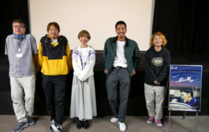 『追い風』10/8(木)・9(金)の上映後、舞台挨拶を開催しました。初日から神戸に滞在し毎日登壇している安楽涼監督とDEGさんに加え、8(木)からは大須みづほさん、9(金)には片山享さんが参加。最終日は4名での賑やかな舞台挨拶となりました。大須さんは最初、DEGさんの体験を映画にして面白いの?と疑問だったそう。完成してちゃんと面白い映画になっていて良かった、と話されました。「僕の映画はすべてそう。あらすじだけだと伝わらない」と安楽監督。そして火曜から毎日、DEGさんの当日LIVEをその日に上映していましたが、最終日の映像を見た大須さんの「これまでのDEGと別人のようにカッコ良かった。人って成長するんだなって」という感想に、「神戸で過ごした7日間で気づいたことがたくさんある」とDEGさん。その時その時の自分に嘘をついてはダメだと話してくれました。ようやく最終日に駆けつけることができた片山さんは「僕にとっては初日」と言いつつ、安楽監督は本当に不器用な男だけどそのまっすぐさに嫉妬することもあると話してくれました。そして舞台挨拶の最後には、神戸滞在中に制作したDEGさんの「Two shot!!!」MVをお披露目初上映!商店街をメインの舞台に、神戸で出会った人たちの笑顔がたくさん映った最高のMVでした…感動。ぜひみなさんも見てください!
