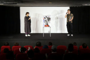 『岡本太郎の沖縄 完全版』9/4(日)の上映後、葛山喜久監督にお越しいただき、舞台挨拶を開催しました。1930年代にパリで前衛芸術運動に参画し、帰国後は自身のアイデンティティを深く見つめるべく日本を再発見する旅に出た芸術家・岡本太郎。「日本人とは何か?自分とは何か?」探究の旅の最後にたどり着いた沖縄で、太郎の目がとらえた、太郎にしか見ることができなかった景色を収めた写真集「岡本太郎の沖縄」は2000年に刊行されました。他用で訪れた図書館で偶然目にした本書表紙の久高ノロの写真に一瞬で惹き込まれたという葛山監督。深く静かで美しい瞳には、実は太郎と敏子が写り込んでいます。そこから太郎が旅した足跡を辿る映画制作の企画が誕生しました。その中で葛山監督が発見したのは、芭蕉布づくりで人間国宝となった平良敏子さんの変わらぬ営みでした。芭蕉布会館へと続く坂道を歩く平良さんの姿は太郎の写真にも収められており、偶然にも同じ場所、同じアングルで同じように歩く平良さんの姿を映画のカメラも捉えていました。「つい昨日も同じことをされているんです」。50年以上を経ながら変わらぬ営みを続ける平良さんの姿に、沖縄そのものの姿を見たような気がしたとそうです。そして映画に登場するおばぁたちを観て、そこに自分の祖母の存在を見たというお客さまの感想がとても嬉しかったと話されました。