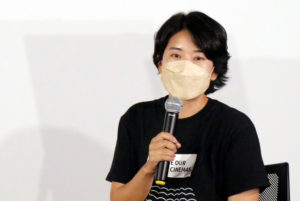 元町映画館12周年記念企画「オキナワンダーランド ~映画で発見する沖縄」8/27(土)『ばちらぬん』上映後、東盛あいか監督と、映画監督/甲南女子大学教授の池谷薫さんにお越しいただき、トークを開催しました。本作は大学の卒業制作としてつくられましたが、撮影直前で突然のコロナ禍。スタッフもキャストも誰も与那国に来られなくなり、先に与那国に戻っていた東盛さんは何も進められない時間を埋めるように毎日カメラを持ち島の人に話を聞きに行ったそうで、映画制作は止まったけどその時間が自分を与那国に近づけてくれたと話されます。「東盛監督の、“故郷を、与那国を知りたい”という熱量に圧倒された」と池谷さん。ドキュメンタリー部分には、東盛さんが「大事にしたいもの」がはっきり映し出されていると話されます。その個人的な強い思いを観て、自分の存在も親があるからだと痛切に感じたそうです。本作は非常に個人的な映画だけれど、公開したことで観たお客さまの抱いた感想を聞き、それが普遍性を持つということを知ったと東盛監督。映画は完成がゴールではなく観てもらってこそという言葉が実感できたと話され、「それを“映画を育てる”と自分は言っている」と池谷さんもご自身の体験を話されました。