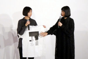 『Polr Night』2/3(土)の上映後、磯谷渚監督、主演・プロデューサーの河野知美さんの舞台挨拶を開催しました。河野さんが初めてプロデュースを務めた『truth~姦しき弔いの果て~』の制作の際に磯谷さんの名前があがったもののその作品では関わることが叶わず、それがきっかけとなり本作『Polar Night』につながっていったと河野さん。磯谷監督にとって劇場公開作は約10年前の『天使の欲望』にまで遡り、長編も初めてということで最初に河野さんから話をもらった時は自信も持てなかったそうですが、3ヶ月後くらいに河野さんから再び「まだやる気はありますか?」と電話をもらって「やります」と答えたそうです。河野さんが好きだったという映画『天城越え』(1983年)のあるシーンで描かれているものから広げていく形で、現代に置き換えて、間口を広げる、という作業の中で本作における「吸血鬼」というキーワードに辿り着いたそうです。