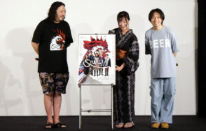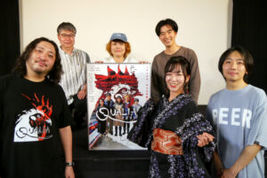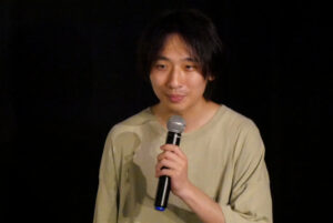 『クオリア』6/22(土)・23(日)の2日間、上映後に牛丸亮監督、佐々木心音さん、藤主税さんの舞台挨拶を開催しました。本作は、牛丸監督が2021年に観た〈劇団うつろろ〉による演劇作品が原作。あまりの面白さに「映像化したい」と作・演出の越智良知さんに申し出て実現しました。メインキャラクター5名のうち3名は最初から「この人に頼もう」と決めていたものの、決まるのに時間がかかったというのが佐々木さんと藤さんだったそうです。もともとファンだったという牛丸監督は、佐々木さんが独立されたタイミングで会った機会にオファー。もし会わなければ制作を延期していたと話します。藤さんの役はもうひとり候補がいましたが、ずば抜けた演技力で射止められたそうです。