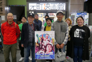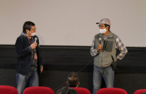 『れいわ一揆』最終日の11/20(金)上映後、初日に続きふたたび原一男監督が駆けつけてくださり、舞台挨拶とトークを開催しました。安富さんの選挙に帯同した馬のユーゴンくんを担当された、神戸市北区の「さとうま牧場」牧場長でセラピストの三嶋鋳二さんにもお越しいただき、原監督と一緒にお話をしていただきました。トークでは「明るい話をしましょう」と、『れいわ一揆 PART2』についての構想を披露した原監督。「PART2」を作ってほしいという声が多数ある中で、原監督が考える“PART2を作るための理屈”は「1の10倍の面白さがあること」。ということは少なくとも馬は10頭は必要だし、さらに牛やヤギやキリンや犬や猫などいろんな動物を出して、それらを引き連れて北から南へと行脚するのはどうだろう、と話されます。そんなこと可能なの?!と戸惑う参加者に、「現実は置いといて、まずは想像を広げることが大事」と原監督。三嶋さんからも各地の小学校の校庭を開放してもらうというアイデアが飛び出しました。政治や国についてダメだと思うところはいくらでもあるが、じゃあどうすればそれをひっくり返せるかということを常に考えたいと原監督。本作の地方での上映で、安富さんの選挙活動に影響を受けたという市議会議員らが出てきていると話され、地方選から面白くなっていくかもしれないとの希望も示されました。