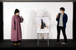 『リング・ワンダリング』3/19(土)の上映後、金子雅和監督の舞台挨拶を開催しました。タイトルは、登山用語で方向を失い円を描くように彷徨うことを表す言葉。人生や自身の行く道に迷い、異なる時間を彷徨う主人公を表現しています。これまで深い山などをロケ地に作品を作ることが多かった金子監督ですが、実は東京生まれ・東京育ち。自身の生まれ育ったまちを見つめ直そうとしたことが本作企画のきっかけだったそうです。主人公は漫画家なのでキャラクターとして動きがなく、存在感を発揮できるのはどんな俳優なのかいろいろ考えたと金子監督。ある時『花と雨』の予告編を観て、主演していた笠松将さんの「枠からはみ出すような動物的な魅力」に惹かれ出演をオファーされました。笠松さんは現場では監督と密にコミュニケーションを取るタイプで、その情熱が周囲にも伝播するようだったと話されました。漫画を手掛けられた森泉岳土さんとは長いお付き合いという金子監督。本作での漫画は、映画の小道具としてだけでない強い存在です。印象的な線を求め森泉さんに依頼されたと話されました。主人公の変化を、漫画の道具の変化として描くアイデアは森泉さんとのディスカッションから生まれたとも話してくれました。